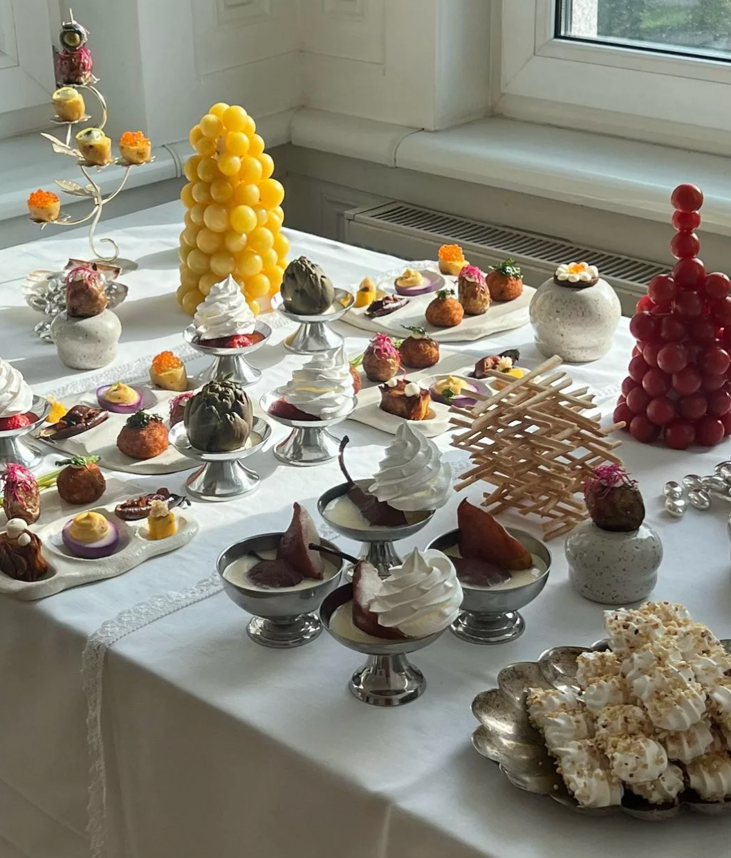 Крокембуш, профитроли, меренга, муссы, креманки с ягодами (как эстетично смотрится красная смородина в них!), трубочки, эклеры и неидеальное печенье, будто испеченное вашей бабушкой, чтобы угостить гостей могут стать стильной альтернативой торту.